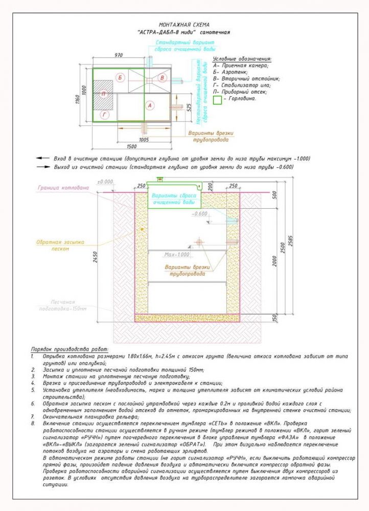 • Она перерабатывает до 1600 л/сут при допустимом залповом сбросе 350л.